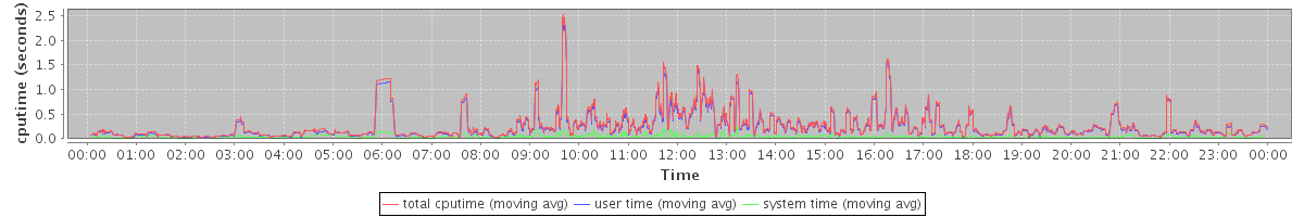 avg(total cputime) = 0.18 avg(user time) = 0.17 avg(system time) = 0.02