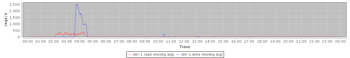 avg(dm-2 read) = 720.63 avg(dm-2 write) = 1737.00