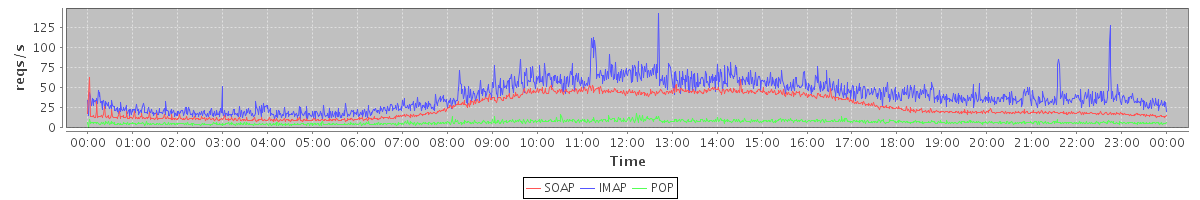 Host zm06.stanford.edu: Mailboxd: Request Rate by Client Protocol
