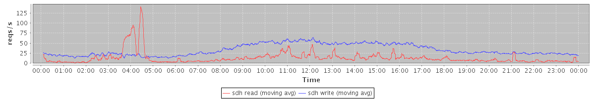 avg(sda1 read) = 21.78 avg(sda1 write) = 447.18