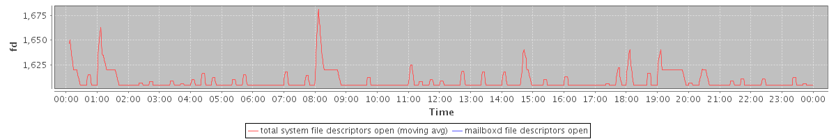 avg(total system file descriptors open) = 1609.15 avg(mailboxd file descriptors open) = 0.00