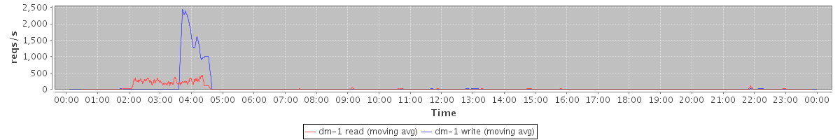 avg(dm-0 read) = 18.77 avg(dm-0 write) = 119.68