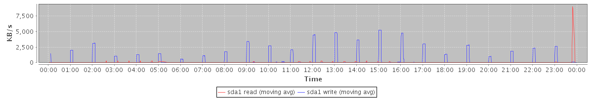 avg(sda1 read) = 20.27 avg(sda1 write) = 332.52