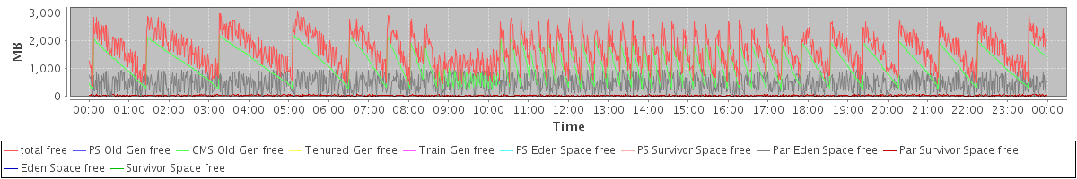 avg(total free) = 1655.98 avg(PS Old Gen free) = 0.00 avg(CMS Old Gen free) = 1138.51 avg(Tenured Gen free) = 0.00 avg(Train Gen free) = 0.00 avg(PS Eden Space free) = 0.00 avg(PS Survivor Space free) = 0.00 avg(Par Eden Space free) = 482.76 avg(Par Survivor Space free) = 34.72 avg(Eden Space free) = 0.00 avg(Survivor Space free) = 0.00