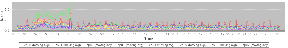 avg(cpu0) = 0.09 avg(cpu1) = 0.01 avg(cpu2) = 0.05 avg(cpu3) = 0.01 avg(cpu4) = 0.00 avg(cpu5) = 0.00 avg(cpu6) = 0.03 avg(cpu7) = 0.00