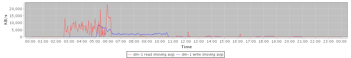 avg(dm-1 read) = 16.43 avg(dm-1 write) = 171.07