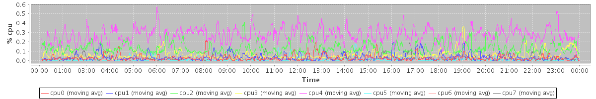 avg(cpu0) = 0.53 avg(cpu1) = 0.35 avg(cpu2) = 0.22 avg(cpu3) = 0.23 avg(cpu4) = 0.26 avg(cpu5) = 0.17 avg(cpu6) = 0.14 avg(cpu7) = 0.15