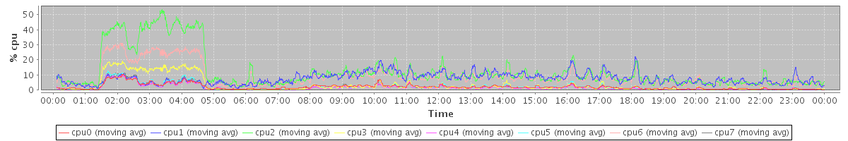 avg(cpu0) = 1.49 avg(cpu1) = 0.42 avg(cpu2) = 0.50 avg(cpu3) = 0.32 avg(cpu4) = 0.25 avg(cpu5) = 0.29 avg(cpu6) = 0.36 avg(cpu7) = 0.30