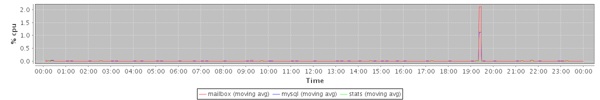 avg(mailbox) = 0.01 avg(mysql) = 0.01 avg(stats) = 0.00
