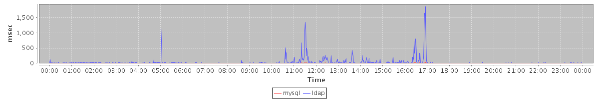 avg(mysql) = 0.93 avg(ldap) = 35.01