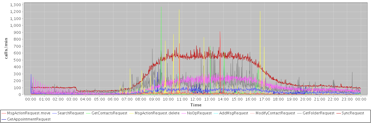 max(MsgActionRequest.move) = 911.00 max(SearchRequest) = 297.00 max(GetContactsRequest) = 1270.00 max(MsgActionRequest.delete) = 1230.00 max(NoOpRequest) = 318.00 max(AddMsgRequest) = 358.00 max(ModifyContactRequest) = 174.00 max(GetFolderRequest) = 689.00 max(SyncRequest) = 709.00 max(GetAppointmentRequest) = 638.00