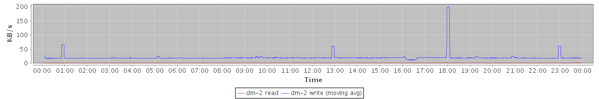 avg(dm-2 read) = 0.02 avg(dm-2 write) = 20.31