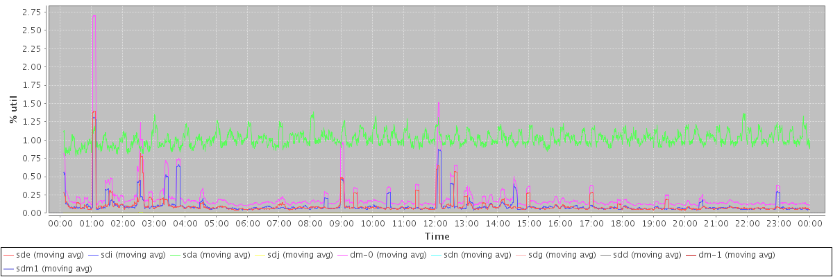 avg(sde) = 0.10 avg(sdi) = 0.10 avg(sda) = 1.02 avg(sdj) = 0.00 avg(dm-0) = 0.21 avg(sdn) = 0.00 avg(sdg) = 0.00 avg(sdd) = 0.00 avg(dm-1) = 0.00 avg(sdm1) = 0.00