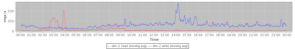 avg(dm-0 read) = 1052.83 avg(dm-0 write) = 234.38