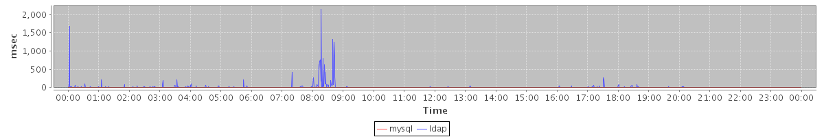 avg(mysql) = 0.37 avg(ldap) = 15.36