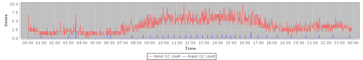 avg(minor GC count) = 3.66 avg(major GC count) = 0.03