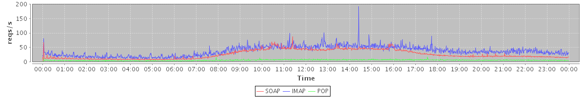 Host zm06.stanford.edu: Mailboxd: Request Rate by Client Protocol
