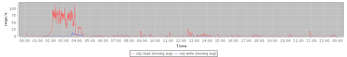 avg(sda2 read) = 0.07 avg(sda2 write) = 7.21