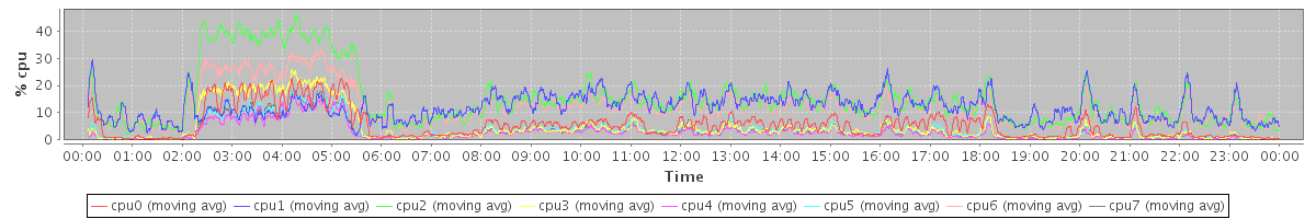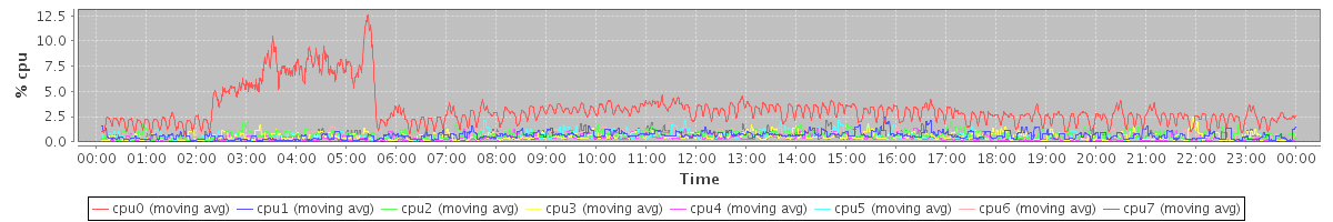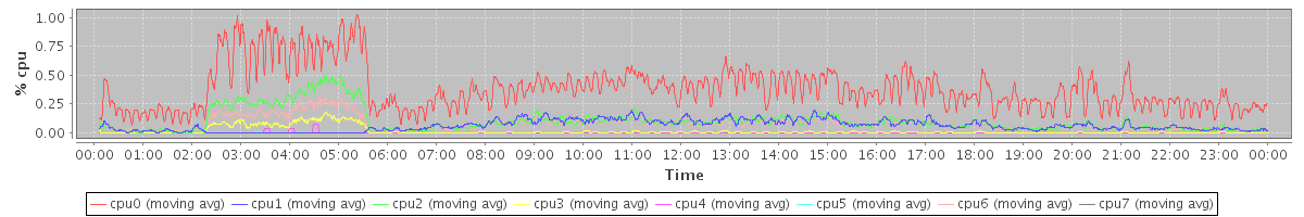 avg(cpu0) = 0.38 avg(cpu1) = 0.06 avg(cpu2) = 0.10 avg(cpu3) = 0.01 avg(cpu4) = 0.00 avg(cpu5) = 0.00 avg(cpu6) = 0.08 avg(cpu7) = 0.00