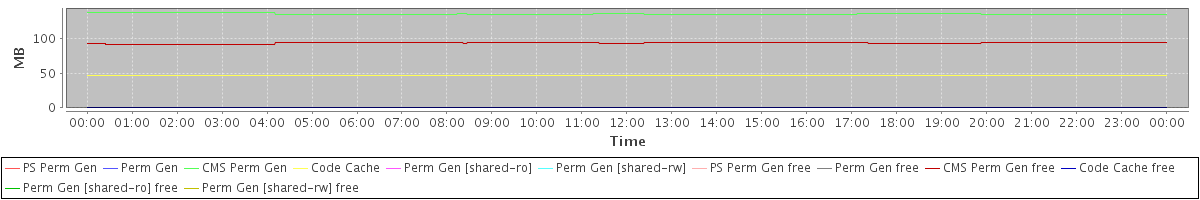 avg(PS Perm Gen) = 0.00 avg(Perm Gen) = 0.00 avg(CMS Perm Gen) = 136.26 avg(Code Cache) = 47.59 avg(Perm Gen [shared-ro]) = 0.00 avg(Perm Gen [shared-rw]) = 0.00 avg(PS Perm Gen free) = 0.00 avg(Perm Gen free) = 0.00 avg(CMS Perm Gen free) = 94.17 avg(Code Cache free) = 0.34 avg(Perm Gen [shared-ro] free) = 0.00 avg(Perm Gen [shared-rw] free) = 0.00
