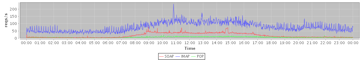 Host zm07.stanford.edu: Mailboxd: Request Rate by Client Protocol