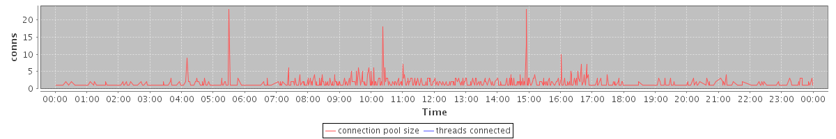 avg(connection pool size) = 0.88 avg(threads connected) = 0.00