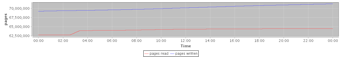 avg(pages read) = 64072909.53 avg(pages written) = 70204745.13