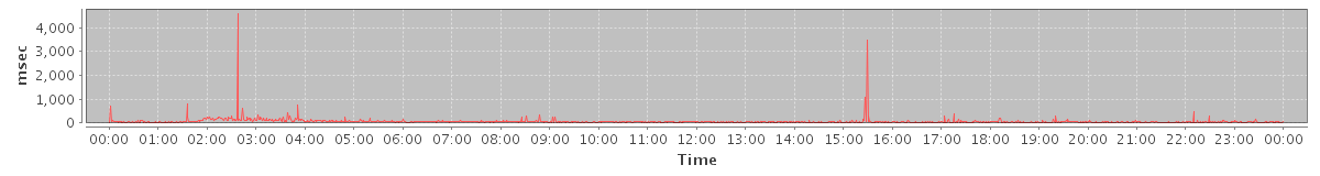 avg(SendMsgRequest) = 417.92 avg(BackupQueryRequest) = 546.60 avg(CancelTaskRequest) = 1162.00 avg(SendInviteReplyRequest) = 434.00 avg(AutoCompleteRequest) = 547.24 avg(SetAppointmentRequest) = 938.78 avg(SearchGalRequest) = 489.08 avg(FolderActionRequest.empty) = 547.64 avg(BackupRequest) = 5901.50 avg(GetQuotaUsageRequest) = 4265.00