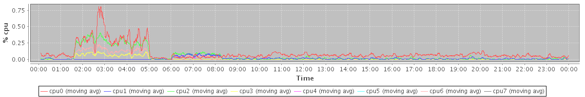 avg(cpu0) = 0.09 avg(cpu1) = 0.01 avg(cpu2) = 0.05 avg(cpu3) = 0.01 avg(cpu4) = 0.00 avg(cpu5) = 0.00 avg(cpu6) = 0.03 avg(cpu7) = 0.00