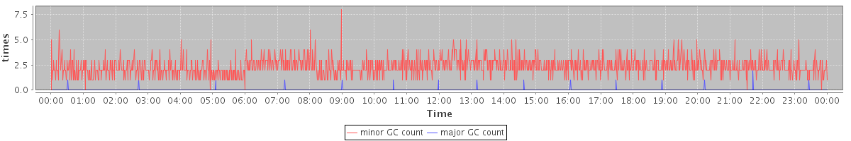 avg(minor GC count) = 2.36 avg(major GC count) = 0.01