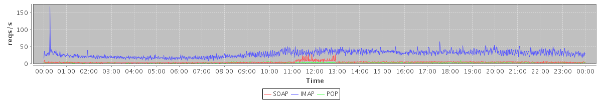 Host zm03.stanford.edu: Mailboxd: Request Rate by Client Protocol