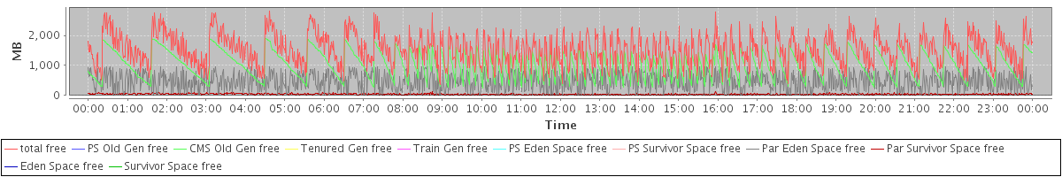 avg(total free) = 1526.36 avg(PS Old Gen free) = 0.00 avg(CMS Old Gen free) = 1014.06 avg(Tenured Gen free) = 0.00 avg(Train Gen free) = 0.00 avg(PS Eden Space free) = 0.00 avg(PS Survivor Space free) = 0.00 avg(Par Eden Space free) = 473.10 avg(Par Survivor Space free) = 39.19 avg(Eden Space free) = 0.00 avg(Survivor Space free) = 0.00
