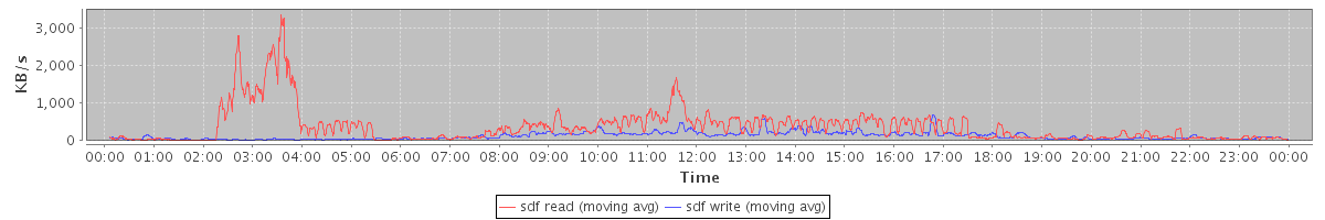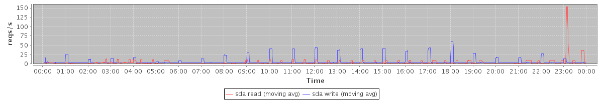 avg(sda1 read) = 32.49 avg(sda1 write) = 454.80