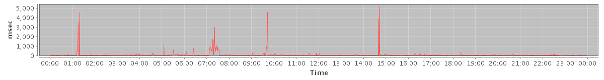 avg(BackupQueryRequest) = 887.00 avg(BrowseRequest) = 765.50 avg(CreateTagRequest) = 4510.00 avg(SaveDraftRequest) = 1825.22 avg(SendInviteReplyRequest) = 767.27 avg(SetAppointmentRequest) = 1109.77 avg(AutoCompleteRequest) = 750.82 avg(ApplyFilterRulesRequest) = 2626.40 avg(BackupRequest) = 5069.50 avg(GetQuotaUsageRequest) = 5132.00