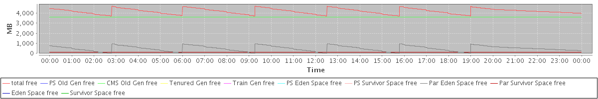 avg(total free) = 4181.64 avg(PS Old Gen free) = 0.00 avg(CMS Old Gen free) = 3592.02 avg(Tenured Gen free) = 0.00 avg(Train Gen free) = 0.00 avg(PS Eden Space free) = 0.00 avg(PS Survivor Space free) = 0.00 avg(Par Eden Space free) = 474.92 avg(Par Survivor Space free) = 114.71 avg(Eden Space free) = 0.00 avg(Survivor Space free) = 0.00