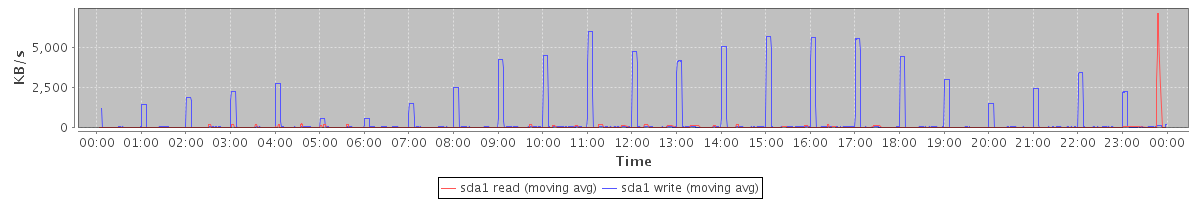 avg(sda1 read) = 22.86 avg(sda1 write) = 420.67