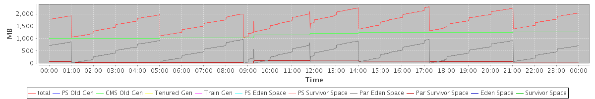 avg(total) = 1686.38 avg(PS Old Gen) = 0.00 avg(CMS Old Gen) = 1149.56 avg(Tenured Gen) = 0.00 avg(Train Gen) = 0.00 avg(PS Eden Space) = 0.00 avg(PS Survivor Space) = 0.00 avg(Par Eden Space) = 477.47 avg(Par Survivor Space) = 59.35 avg(Eden Space) = 0.00 avg(Survivor Space) = 0.00