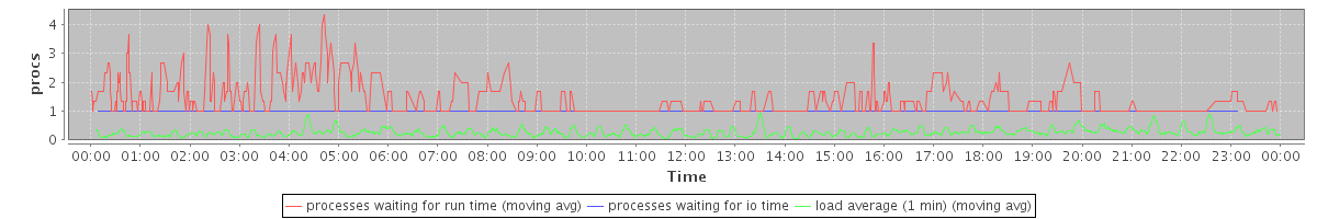 avg(processes waiting for run time) = 0.36 avg(processes waiting for io time) = 0.01 avg(load average (1 min)) = 0.26