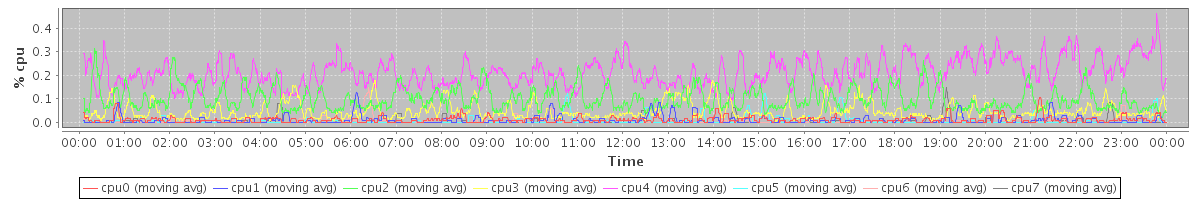 avg(cpu0) = 0.01 avg(cpu1) = 0.01 avg(cpu2) = 0.10 avg(cpu3) = 0.05 avg(cpu4) = 0.21 avg(cpu5) = 0.01 avg(cpu6) = 0.00 avg(cpu7) = 0.00