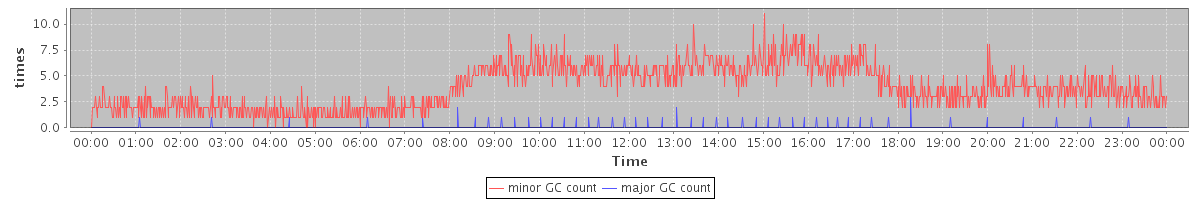 avg(minor GC count) = 3.87 avg(major GC count) = 0.04