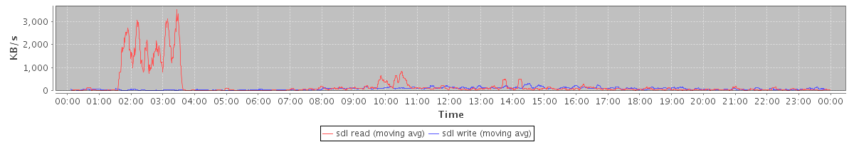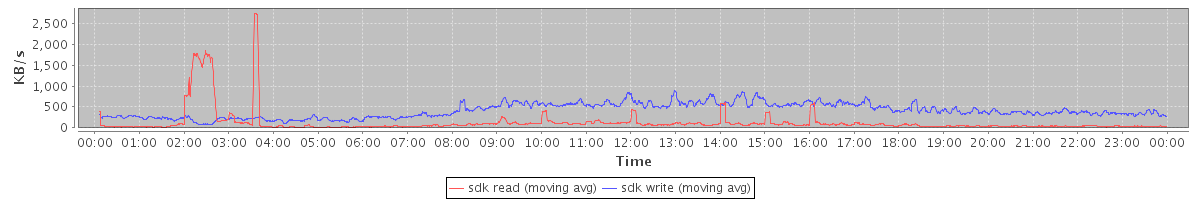 avg(sda2 read) = 0.13 avg(sda2 write) = 6.72