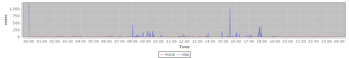 avg(mysql) = 0.35 avg(ldap) = 9.76