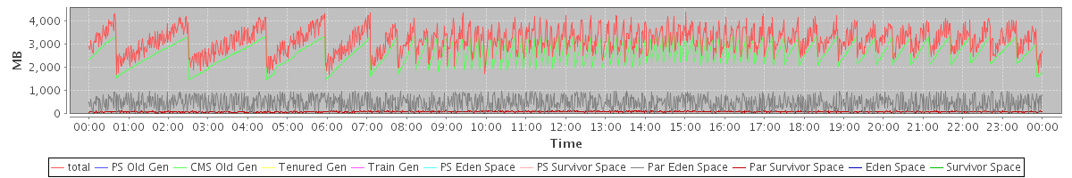 avg(total) = 3168.97 avg(PS Old Gen) = 0.00 avg(CMS Old Gen) = 2606.23 avg(Tenured Gen) = 0.00 avg(Train Gen) = 0.00 avg(PS Eden Space) = 0.00 avg(PS Survivor Space) = 0.00 avg(Par Eden Space) = 475.66 avg(Par Survivor Space) = 87.08 avg(Eden Space) = 0.00 avg(Survivor Space) = 0.00