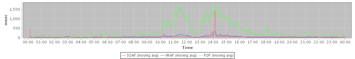 Host zm09.stanford.edu: Mailboxd: Response Time by Client Protocol