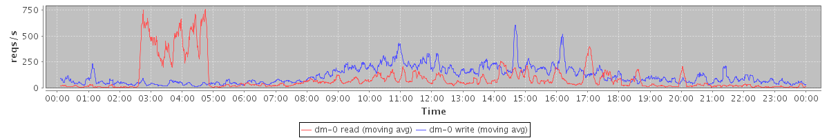 avg(dm-1 read) = 949.03 avg(dm-1 write) = 353.21
