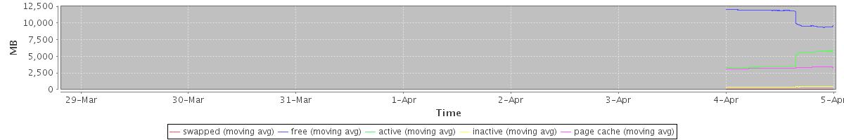 avg(swapped) = 0.23 avg(free) = 11052.18 avg(active) = 4171.93 avg(inactive) = 363.57 avg(page cache) = 3225.88