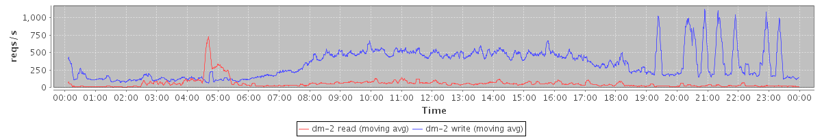 avg(dm-1 read) = 1484.54 avg(dm-1 write) = 438.30