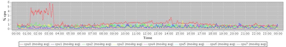 avg(cpu0) = 0.14 avg(cpu1) = 0.02 avg(cpu2) = 0.06 avg(cpu3) = 0.01 avg(cpu4) = 0.00 avg(cpu5) = 0.00 avg(cpu6) = 0.03 avg(cpu7) = 0.00