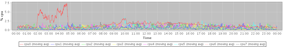 avg(cpu0) = 1.67 avg(cpu1) = 0.56 avg(cpu2) = 0.63 avg(cpu3) = 0.46 avg(cpu4) = 0.57 avg(cpu5) = 0.55 avg(cpu6) = 0.59 avg(cpu7) = 0.48