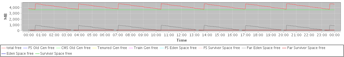 avg(total free) = 4191.43 avg(PS Old Gen free) = 0.00 avg(CMS Old Gen free) = 3600.83 avg(Tenured Gen free) = 0.00 avg(Train Gen free) = 0.00 avg(PS Eden Space free) = 0.00 avg(PS Survivor Space free) = 0.00 avg(Par Eden Space free) = 473.98 avg(Par Survivor Space free) = 116.62 avg(Eden Space free) = 0.00 avg(Survivor Space free) = 0.00